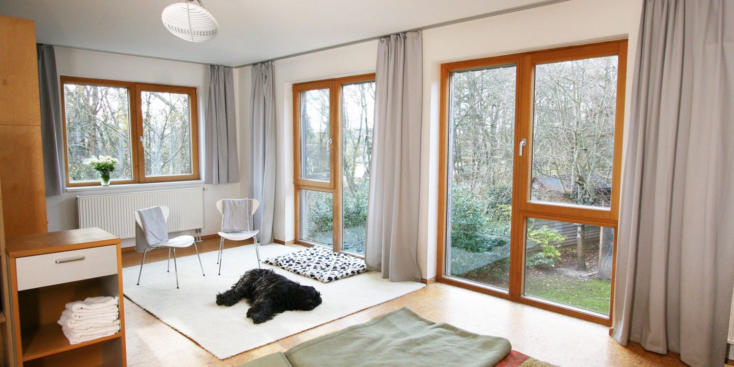 - Eine Kombination mit Holz- oder Fliesenboden in Kombination mit Teppichinseln gibt Hunden eine Wahlfreiheit und ermöglicht es ihnen, sich sicher in der Wohnung zu bewegen.